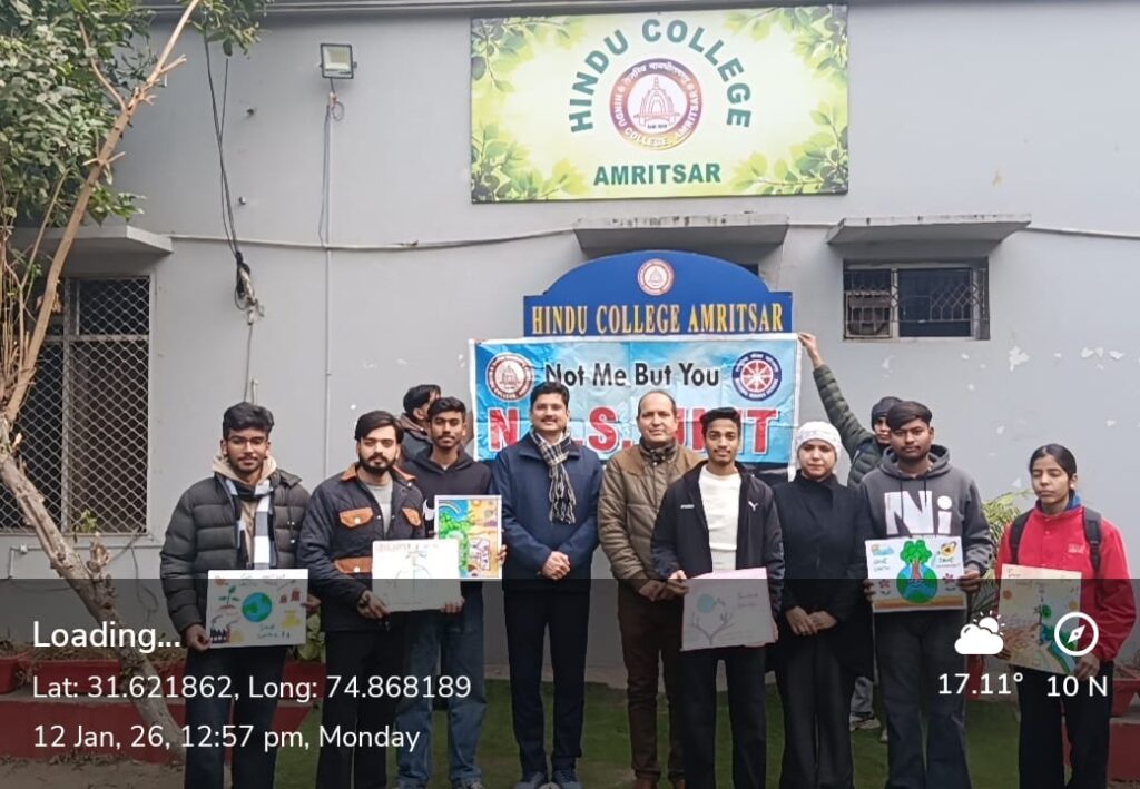 The NSS Unit, Hindu College, Amritsar commenced the celebrations of National Youth Week from 12th to 19th January. On the first day, a Poster Making Activity was organized on the theme “Youth for Clean and Green India.” Students actively participated and created posters emphasizing cleanliness, environmental awareness, and green practices.